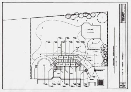 A small arbor over the sidewalk leading from the driveway gave family and friends a grand entrance into the backyard . The backyard had some major drainage issues which had to be solved in the design process. The landscape plan also included a large flagstone upper terrace area with a outdoor fireplace and a deck on the back of the house.