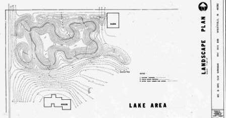 The existing contours are shown by the light lines and the lake design are dark looking. Approximately, 12,000 cu. yds. of sand was excavated from the lake.